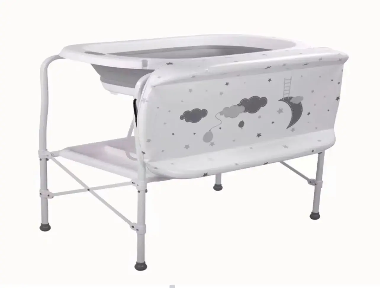 - تخزين مدمج: أرفف وصناديق لتخزين الحفاضات، المناديل، والصابون لتسهيل الوصول أثناء الغيار أو الاستحمام.